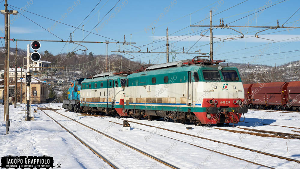 In una fredda ma soleggiata giornata di neve le due E.444R che abbiamo visto muoversi ieri da Milano a Savona hanno fatto il loro ultimo viaggio fino al demolitore di San Giuseppe di Cairo.