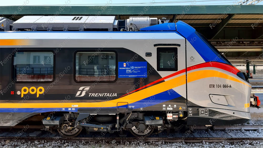 Entro il 2032, termine di scadenza del contratto di servizio attuale, la flotta della Regione Puglia sarà così composta da 50 treni POP ETR 104, 3 treni Jazz ETR 324 e 4 treni Rock ETR 421.