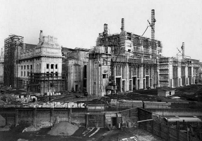 L’approvazione definitiva del progetto di Stacchini avvenne nel 1924. Al mutato clima politico dell’epoca corrisposero nuove esigenze architettoniche e una riorganizzazione delle scelte decorative. Tra le varianti va ricordata la sostituzione delle pensiline sui binari previste nel progetto originario e l’introduzione delle grandi tettoie in ferro realizzate secondo il progetto dell’ingegnere Alberto Fava. La luce libera dell’arcata principale raggiunge i 72 metri ed è la più grande realizzata in Italia, le tettoie raggiungono una lunghezza di 341 metri, coprendo un'area di 66.500 mq. Nel maggio del 1931 la Stazione viene finalmente inaugurata.
