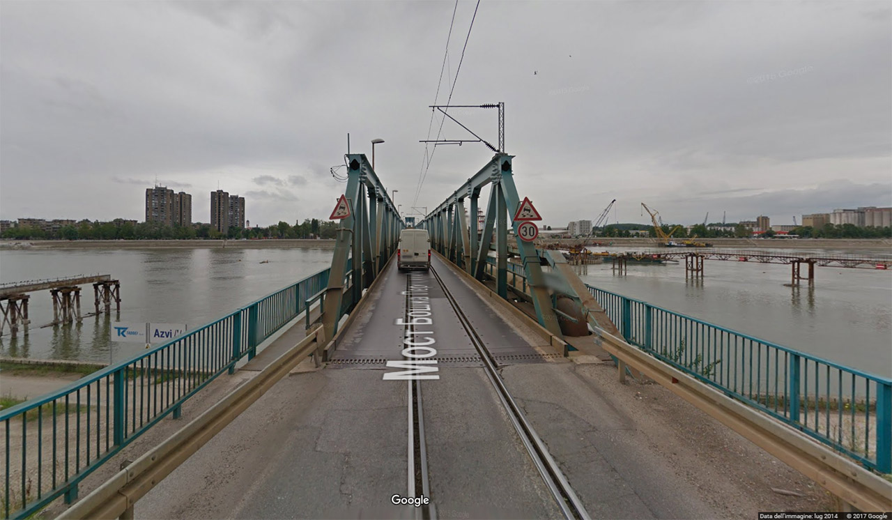 Questo ponte fu costruito nel 2000 in seguito alla distruzione dovuta ai bombardamenti della NATO nel 1999d è un ponte provvisorio in attesa di completamento di quello che sarà il ponte definitivo nel frattempo in costruzione poco a lato.
