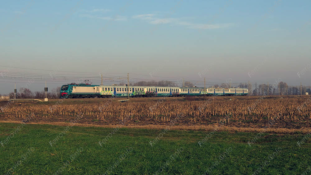 Stiamo parlando di quello che oggi, con E.464.185 in testa e cinque rimorchiate Le 108 per ALe 801/940 al seguito sta viaggiando da Trieste ad Alessandria.