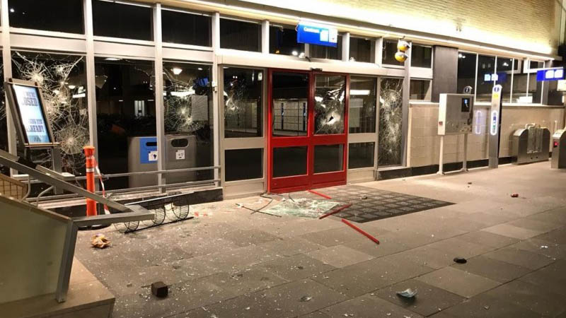 Per ordine della polizia l'impianto ferroviario è stato chiuso. L'edificio è stato distrutto e i negozi sono stati saccheggiati mentre un'auto di ProRail (la RFI dei Paesi Bassi, ndr) è stata devastata e quindi incendiata col traffico ferroviario che è rimasto interrotto per ore.