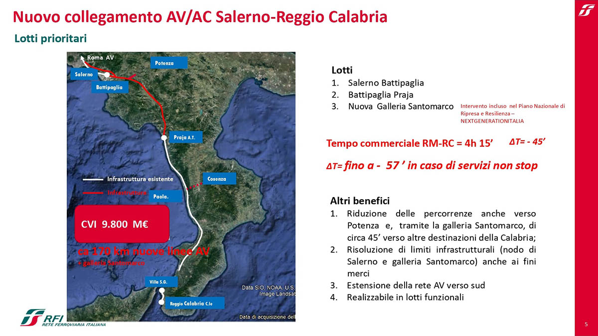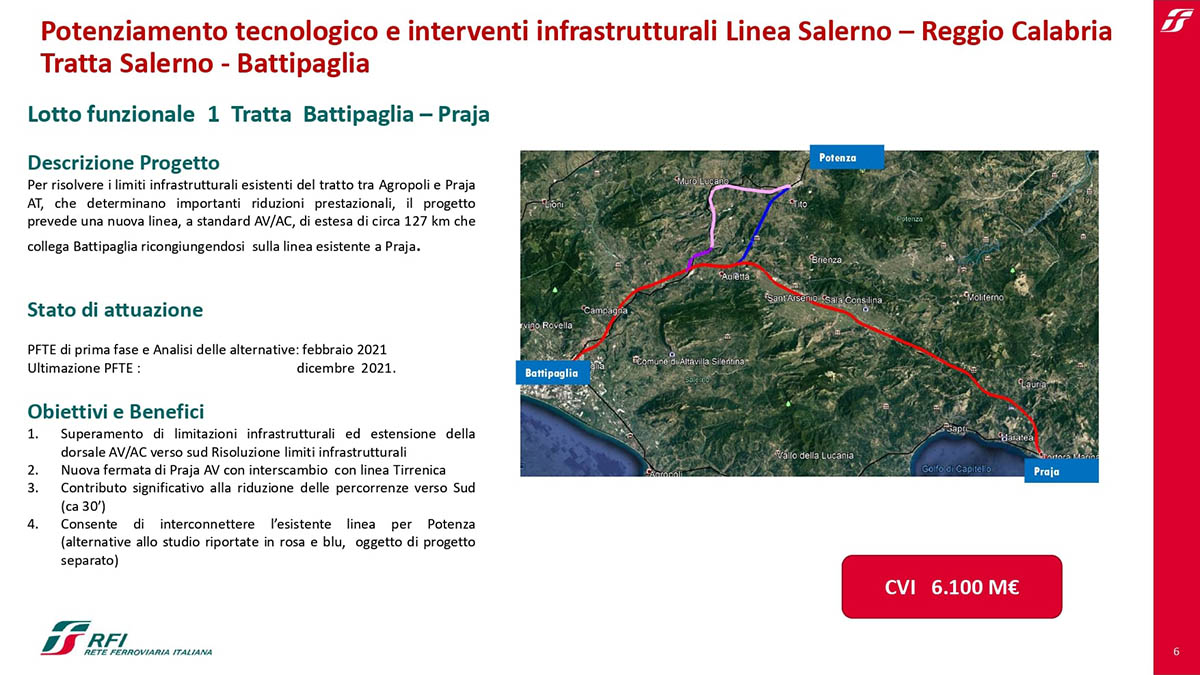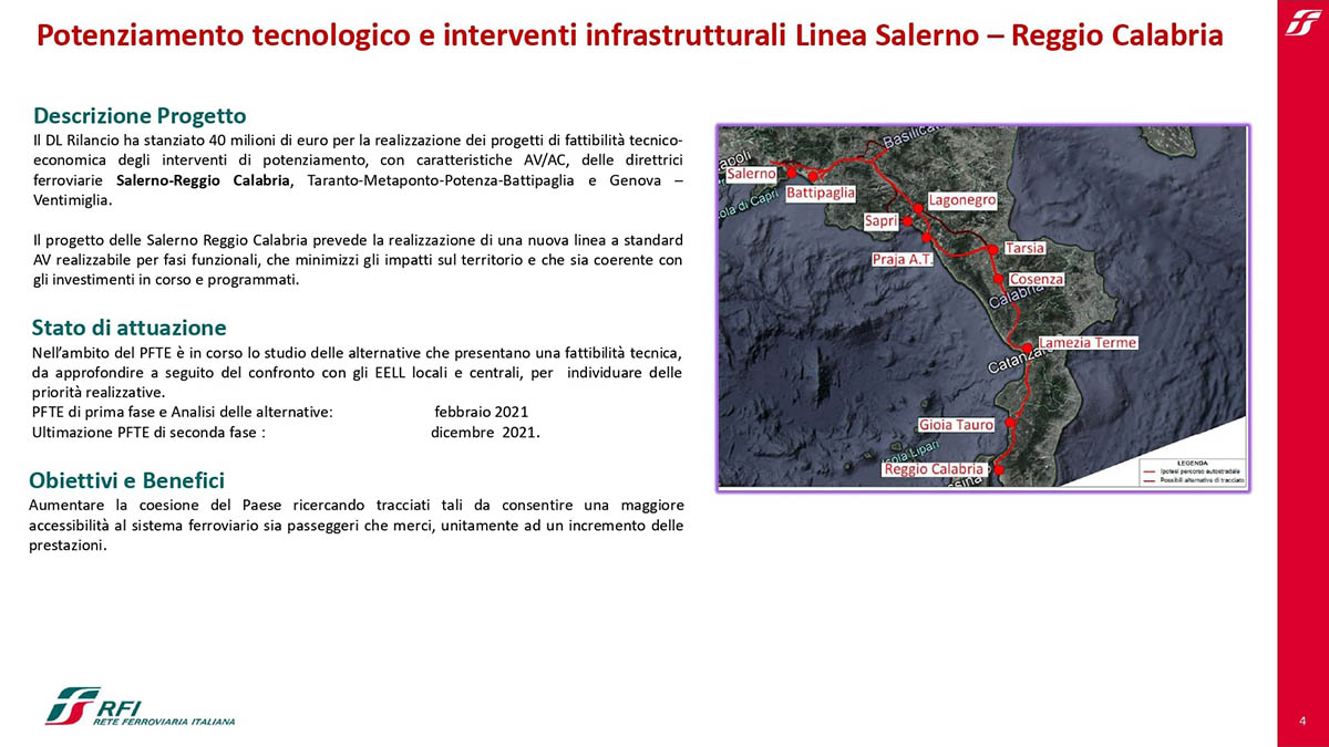 "Una certezza c'è: dall'Alta Velocità di Rete con la "Massima velocizzazione della Ferrovia Tirrenica Meridionale Salerno - Reggio Calabria", un notevole passo avanti, almeno su carta, è stato fatto".