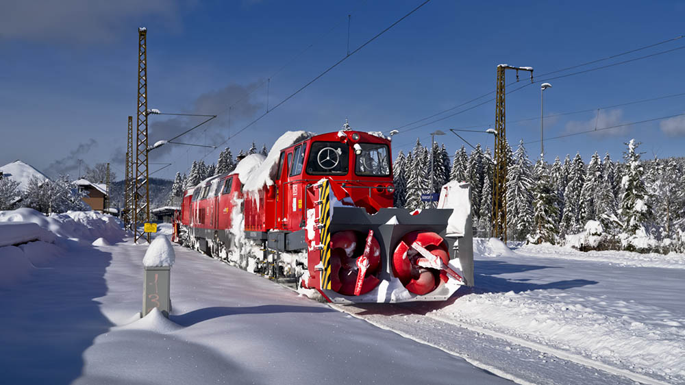 La scorsa notte si sono svolte numerose corse di ricognizione e sgombero della neve e i servizi di emergenza di DB sono costantemente al lavoro per liberare le principali linee da neve e ghiaccio e per mantenerle libere. Il lavoro è reso più difficile in molti luoghi dalle continue abbondanti nevicate dai cumuli di neve e dalle forti gelate.