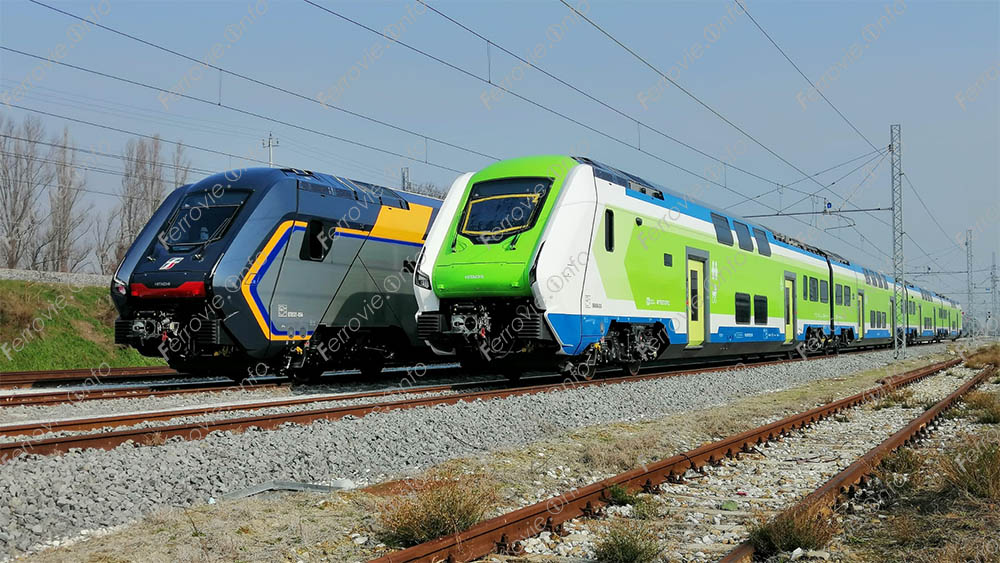 Le foto di Giovanni Grasso ci mostrano il convoglio giunto al centro di omologazione di Bologna San Donato dallo stabilimenti Hitachi Rail Italy di Reggio Calabria e fermato per la circostanza in maniera quasi perfetta di fianco a un Rock di Trenitalia.