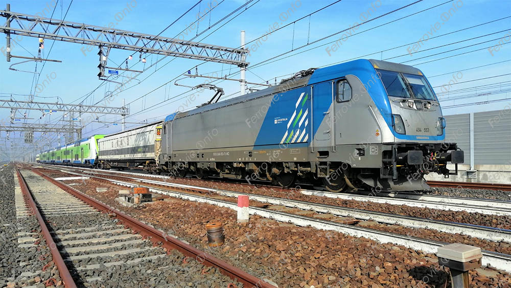 Trasferimento ancora una volta a carico di DB Cargo Italia, effettuato in questa circostanza con la 494 553 supportata come sempre da due carri RailAdventure, uno in testa e uno in coda rispetto all'automotrice.