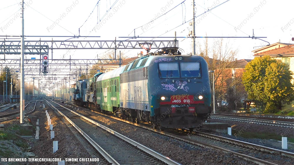In compagnia della solita vettura di appoggio in livrea verde, il carro è stato trainato dalla E.405.015 di Mercitalia Rail dal confine fino a Terni, città che raggiungerà domani, verosimilmente per qualche ritiro.