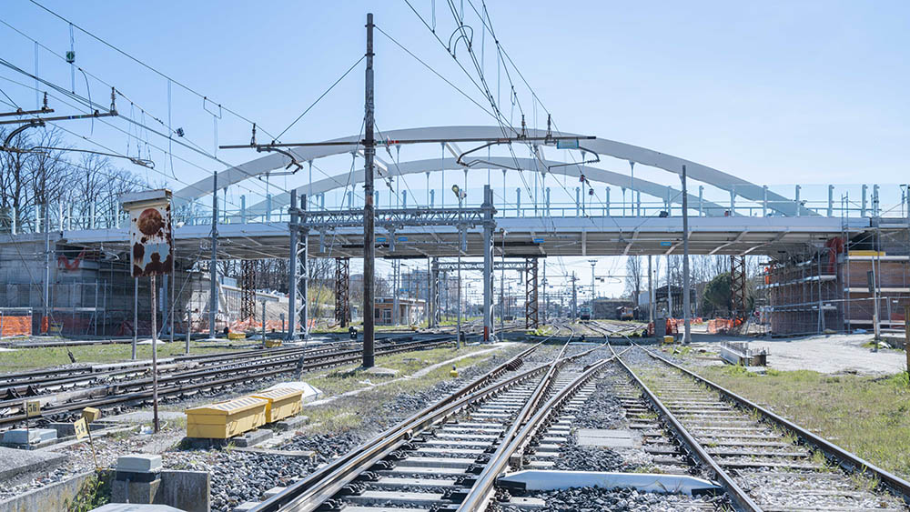 Un cantiere complesso per l’interferenza dei lavori con il traffico ferroviario. Per ridurre le ripercussioni sulla circolazione dei treni molte attività si sono svolte in orario notturno e nei fine settimana. In particolare sono state utilizzati tre week end per la demolizione del vecchio cavalcaferrovia, uno per il varo del nuovo ponte e venti per interventi di completamento.