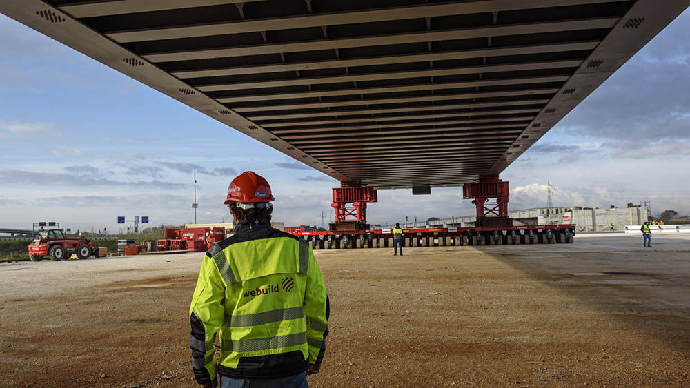 Il ponte installato, come gli altri due che saranno posizionati nei prossimi mesi, ha un peso di 2500 tonnellate ed è lungo circa 80 metri con un’altezza di 21 metri. Dopo una serie di attività preliminari per la sistemazione dell’asse stradale, il ponte, con un’operazione durata circa 10 ore, è stato preso in carico da 18 speciali carrelloni, che complessivamente hanno distribuito il peso su 104 assi gommati, per essere poi issato a circa 6 metri da terra tramite torri di sollevamento (Strand Jack).