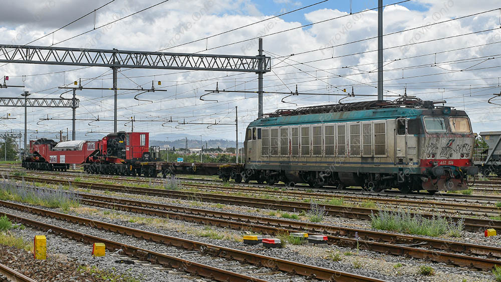 Questa volta, titolare del convoglio, è la E.652.036 di Mercitalia Rail che nella foto di Giovanni Gardenghi vediamo in sosta col suo pesante carico a Firenze Castello.