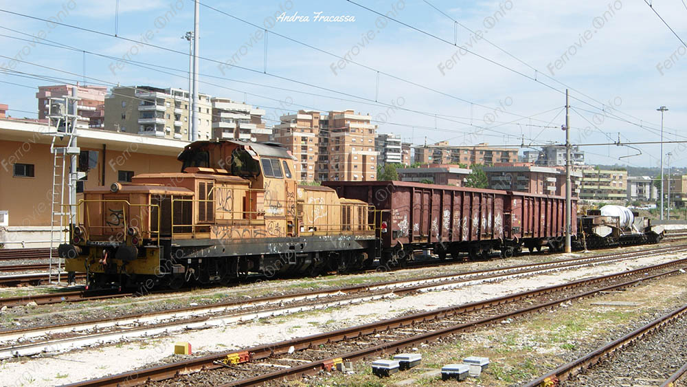 Grazie alle foto di Andrea Fracassa lo vediamo mentre sosta con una composizione molto interessante con una D.145 in testa e due carri Tipo E a seguire.