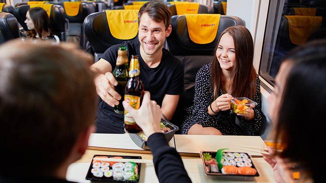 Il prezzo del biglietto include sempre la prenotazione del posto o del letto e tutti i servizi a bordo che i passeggeri ricevono durante il viaggio, inclusi acqua in bottiglia gratuita, caffè e una piccola colazione gratuiti, connessione Internet o utilizzo del portale di intrattenimento RegioJet e altri servizi a bordo.