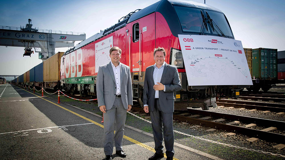 Il 21 giugno, l'amministratore delegato del Cargo Center Graz Christian Steindl e il direttore vendite e logistica di ÖBB Rail Cargo Group (RCG) Thomas Kargl hanno accolto il primo treno dalla Cina al Cargo Center Graz di Werndorf.