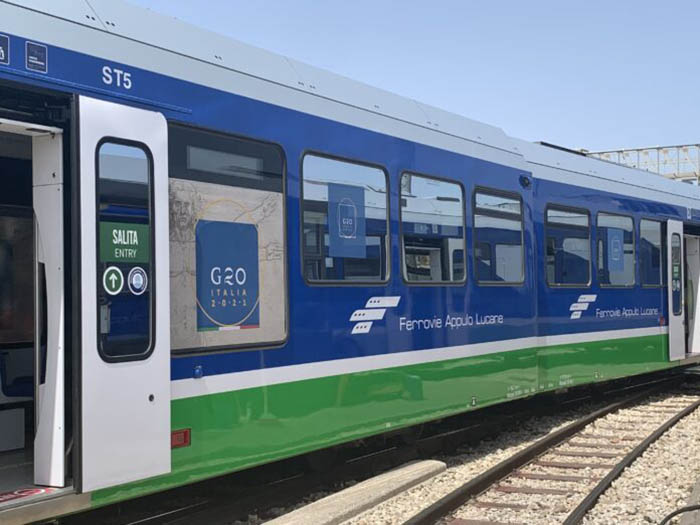 Domani mattina, le delegazioni Esteri del G20, viaggeranno a bordo del treno Stadler delle FAL, per l'occasione brandizzato con i loghi del G20 sia all'esterno, sui finestrini, sia all'interno, sui copritesta dei sedili.