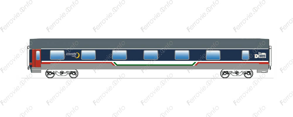 Nella "vasca" è presente il logo Trenitalia mentre ai lati il logo Intercity Notte e la scritta Deluxe con il disegno del viaggiatore che dorme.