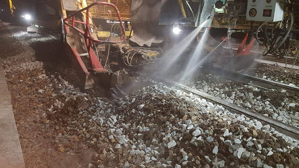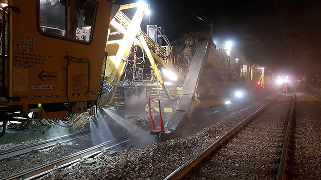 Si tratta in particolare di lavori risanamento dell'armamento ferroviario che prevedono la sostituzione del pietrisco grazie alla macchina risanatrice della massicciata che impegna circa 15 persone/notte e sostituisce fino a circa 250 metri di massicciata a notte.