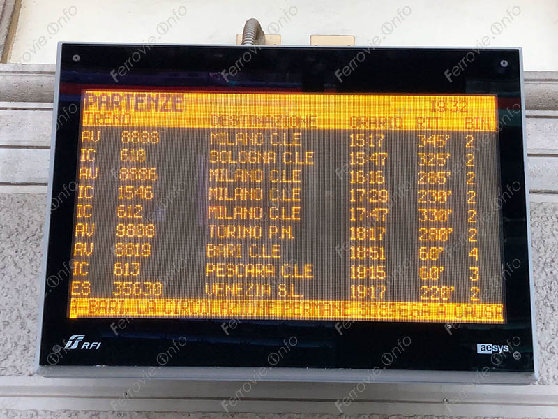 • FA 8819 Milano Centrale (16:05) - Bari Centrale (23:36)