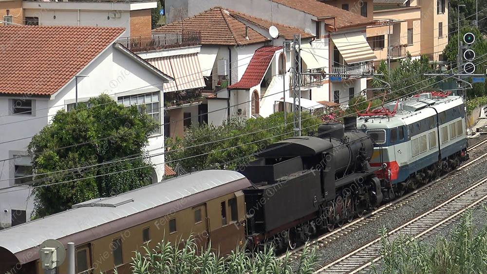 Come abbiamo avuto modo di raccontare nei giorni scorsi (Ferrovie: Trasferita dalla Sardegna la 740.423 di Fondazione FS), la locomotiva è giunta in continente ovviamente via mare e a Villa San Giovanni è stata presa in carico dalla E.656.023 della Fondazione FS Italiane.