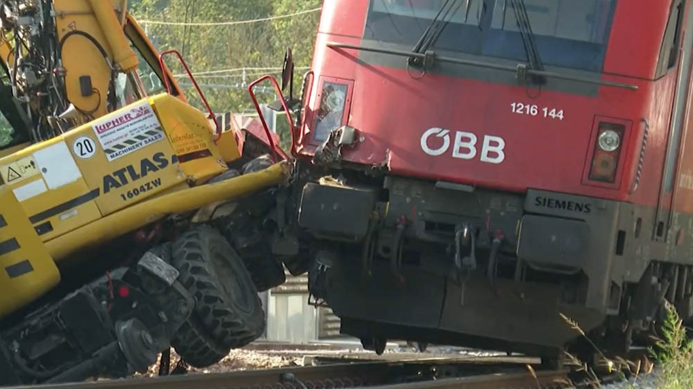 Un treno passeggeri condotto dalla Taurus 1216 144 delle ÖBB si è scontrato con una macchina per lavori sui binari.