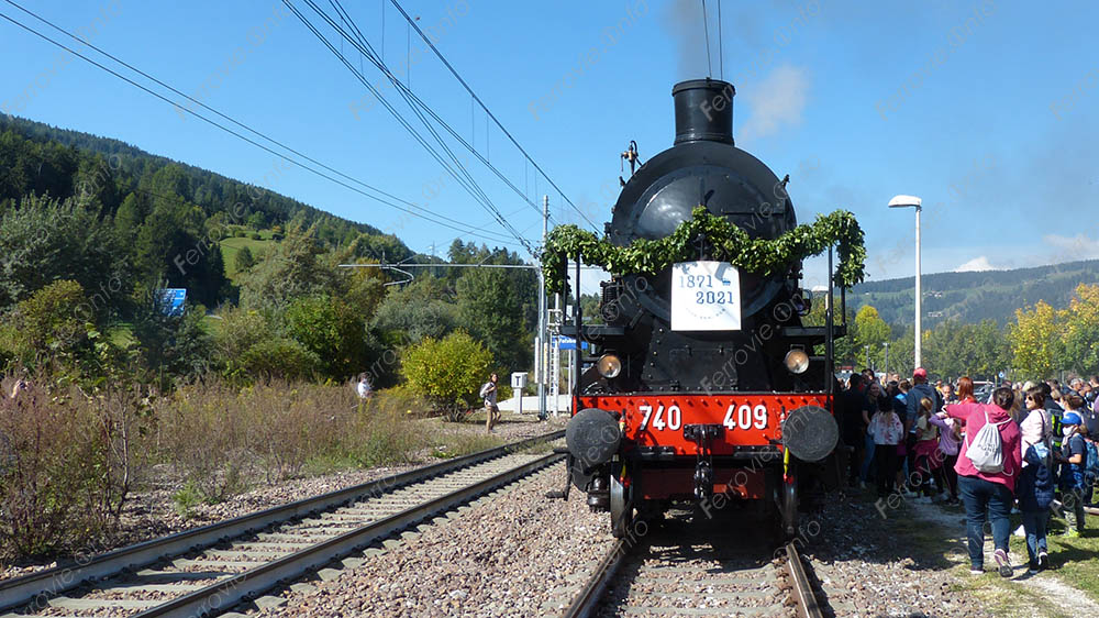 A Toblach/Dobbiaco ci si ferma al binario 1, usato assai di rado con gli orari attuali che non prevedono incroci, e si svuota la carrozza 1 riservata alle autorità e agli ospiti istituzionali che continueranno i festeggiamenti nel parco del Grand Hotel Dobbiaco, all’epoca costruito proprio dalle Südbahn prime esercenti della linea.