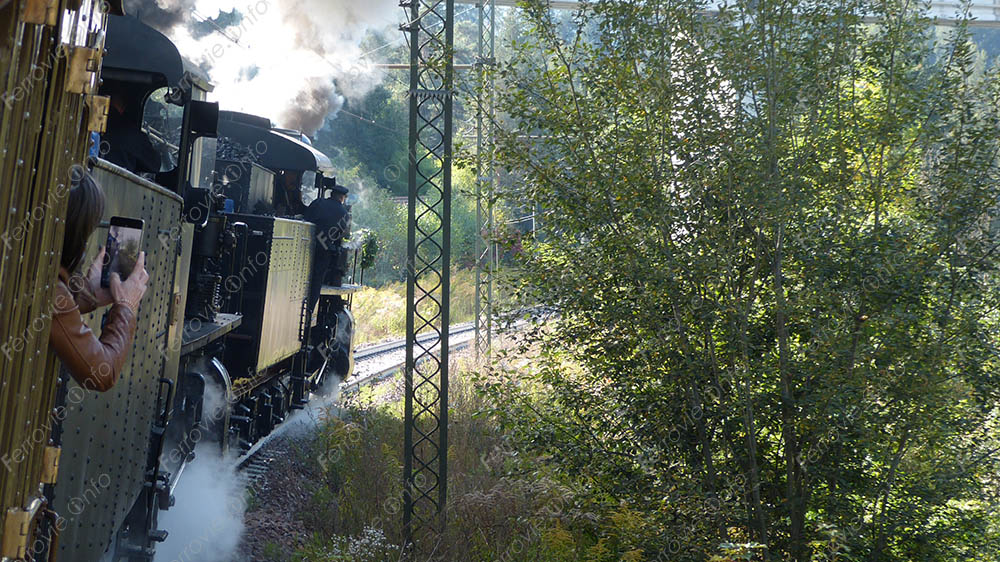 Adesso è la 740.278, seguita quindi dalla 740.409, che con il suo tender apre la via del ritorno ripercorrendo le fermate effettuate in andata.