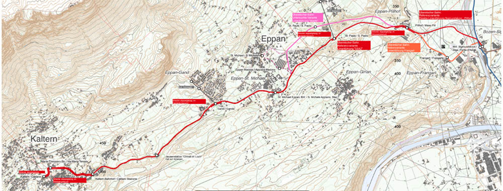 Una linea tranviaria che da Caldaro passi per Appiano per poi immettersi nella linea ferroviaria esistente Bolzano - Merano a Ponte Adige, con un tracciato quindi che non attraversa la città.