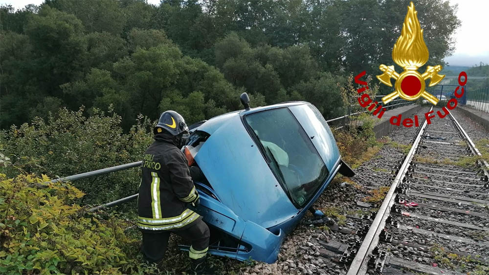 I Vigili del Fuoco di Avellino sono intervenuti stamattina nel territorio del comune di Prata di Principato Ultra, in località Ponte Sabato, per un incidente stradale che ha visto coinvolta una autovettura che uscita di strada è finita sui binari della ferrovia.