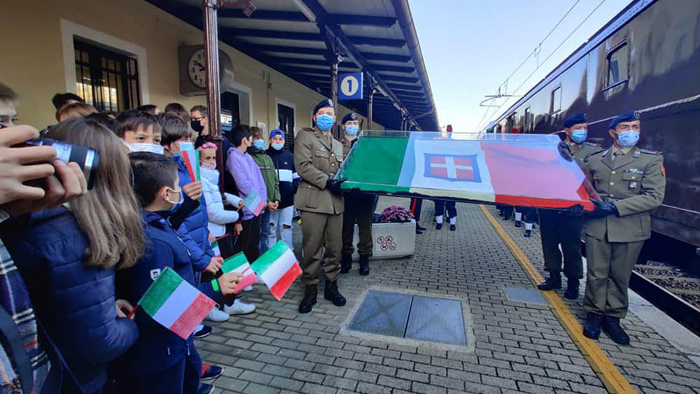 Un corteo militare è partito alla volta dell’ex Stazione di Aquileia ricreando simbolicamente l’atmosfera della partenza di quel treno del 29 ottobre 1921. Dalla già Stazione di Aquileia il corteo istituzionale si è spostato verso la Stazione di Cervignano da dove, a seguito di una breve cerimonia e dei saluti istituzionali, è ripartito il treno con la Bandiera.