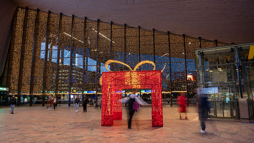 "Quest'anno stiamo davvero disfacendo le valigie", ha detto il direttore della stazione Marijke Ris. "Ecco perché abbiamo installato un grande "regalo" nell'atrio della stazione sotto il quale si può camminare. Perché c'è molto di più da fare in stazione oltre a prendere semplicemente treno. Ci sono diversi negozi dove si possono acquistare bellissimi regali per le vacanze".