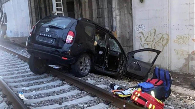 Un'auto è precipitata ieri sera da un cavalcavia ed è finita sui binari dell'alta velocità tra Milano e Rogoredo.