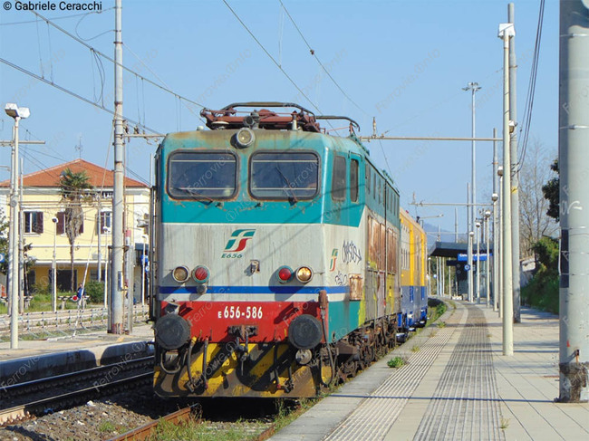 Trasferimento per il bagagliaio del treno diagnostico Archimede nei nuovi colori di RFI.