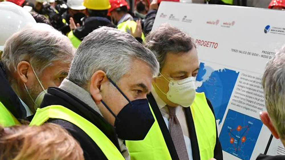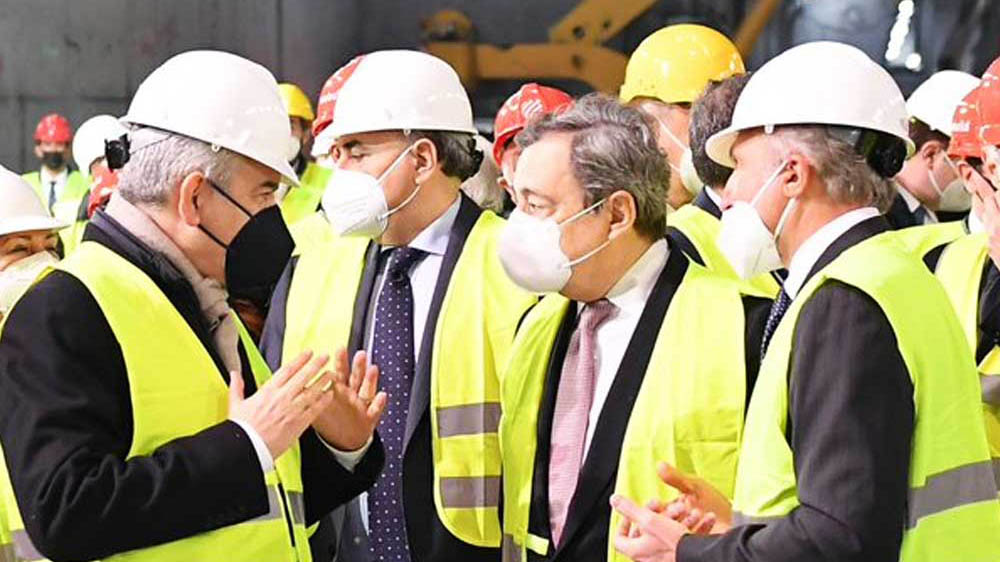 Visita del Presidente del Consiglio Mario Draghi, questa mattina, al cantiere del Progetto Unico del Terzo Valico dei Giovi-Nodo di Genova, una delle infrastrutture ferroviarie più importanti tra quelle in esecuzione oggi in Italia.