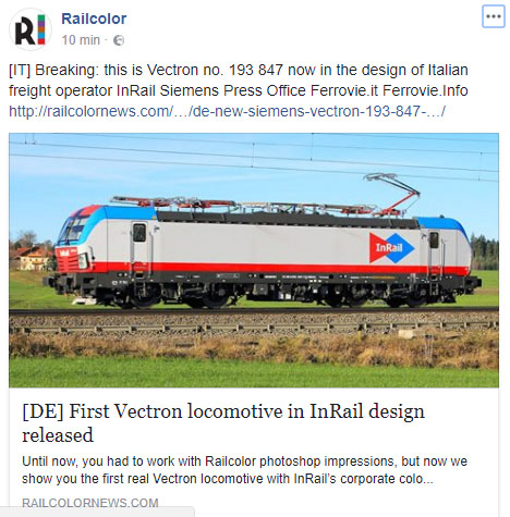 La Vectron 193 847 di InRail ha ricevuto la livrea sociale come testimoniato dal post apparso sul portale Railcolor news.
