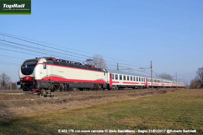 La domanda non sarà sorta solo a noi. Vedendo questa bellissima foto comparsa sul sito degli amici di TopRail, si nota che l'accostamento tra la livrea Frecciabianca della E.402B e la nuova livrea presentata qualche giorno fa a Roma Termini non è affatto male e anzi sembra addirittura migliore di quella applicata alla E.402B.143 e che dovrebbe diventare quella futura e ufficiale.