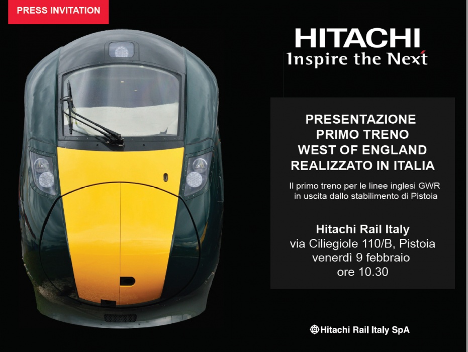 Lo stabilimento pistoiese di Hitachi Rail Italy rende noto che venerdì prossimo 9 febbraio farà conoscere ai viaggiatori e alla stampa il primo dei nuovi treni che collegheranno Londra al Devon e alla Cornovaglia.