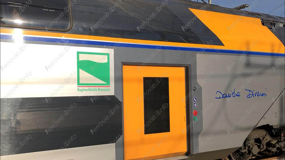 Lo stemma della Regione Emilia Romagna compare anche sui convogli a due piani Hitachi.