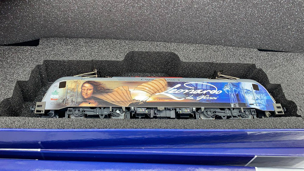 Il terzetto è quello già visto in altre occasioni, ÖBB che mette la locomotiva, Roco che realizza il modello in scala 1:87 e Gudrun Geiblinger che disegna la livrea commemorativa.