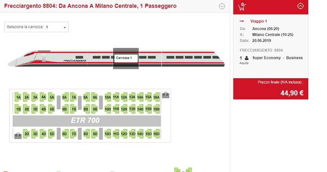 Oltre che per la dicitura, si può vedere la tipologia di treno al momento di acquistare il posto a sedere con la chiara denominazione del convoglio. Dalla schermata si nota che l'ETR 700 Frecciargento avrà anche il segmento Business, fino ad ora presente solo sui treni Frecciarossa.