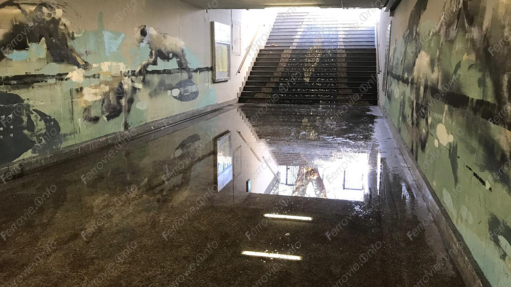 Come se questo non bastasse risultano continuamente bagnati anche i muri delle scale e quelli dove è ubicato il tabellone delle partenze e le obliteratrici, il tutto nonostante siano coperti da tettoie. Questo lascia pensare che le infiltrazioni siano a monte, quindi che provengano dalla vicina strada e che per eliminarle sarebbero necessari importanti lavori di isolamento.