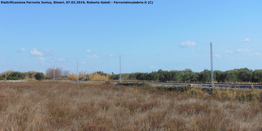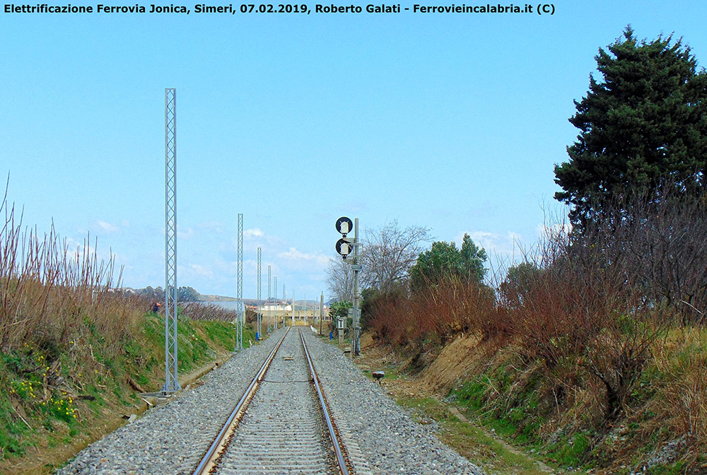 "Giorno dopo giorno, infatti, lo storico tracciato ferroviario jonico cambia volto, con sempre più pali posti in opera a fianco del binario, per il momento esclusivamente in piena linea: all'interno delle stazioni l'installazione delle strutture di sostegno della catenaria necessita di progettazione specifica per ogni singolo impianto, in base al piano dei binari (che in alcuni casi verrà modificato, come nel caso di Rossano), ed avverrà nei prossimi mesi, una volta terminata la posa in opera della palificazione lungo la linea.