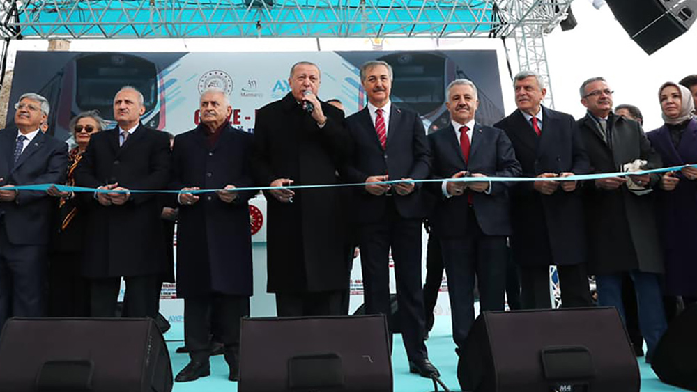 Il presidente Recep Tayyip Erdoğan ha inaugurato ufficialmente il corridoio ferroviario suburbano Marmaray attraverso Istanbul di 77 km, 15 anni dopo l'inizio della costruzione.