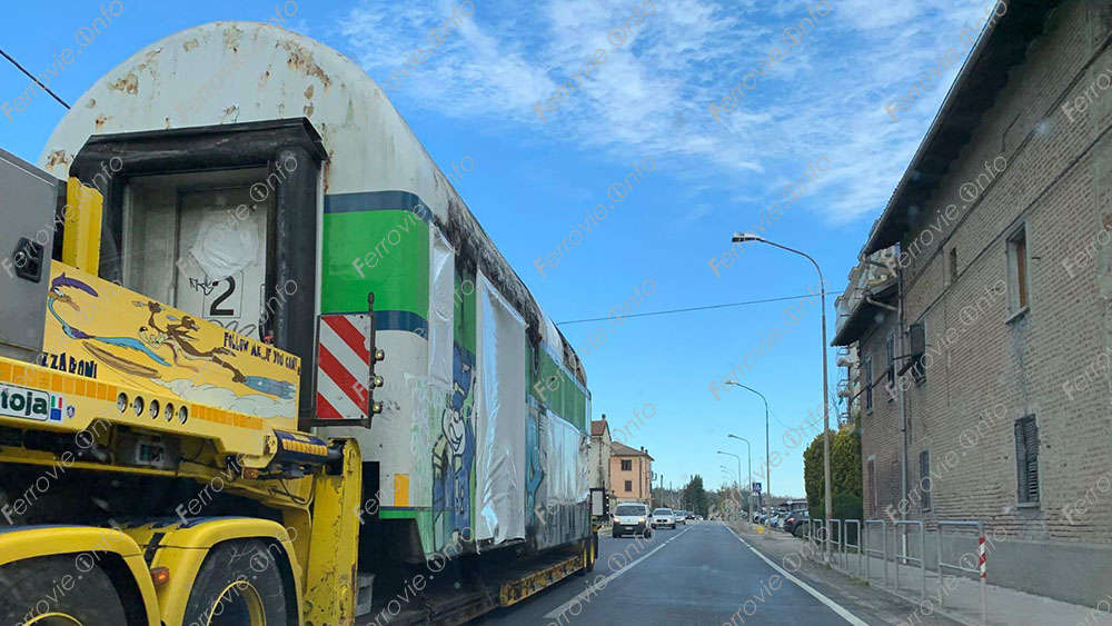 Come abbiamo già avuto modo di vedere in passato, il trasferimento di rotabili da demolire avviene non sempre via ferrovia ma anche via strada.