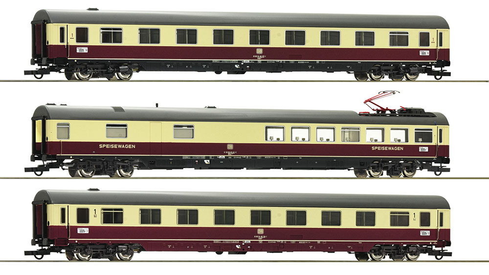 Il set proposto dalla casa austriaca è una volta tanto esatto in tutte le sue parti, come tipologia degli elementi, come datazione e come iscrizioni sulle tabelle di percorrenza. Un TEE "facile facile" ma molto elegante con la ristorante pantografata, che non deve mancare sui plastici degli amanti del Club più veloce d'Europa.