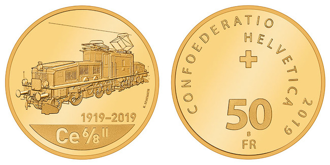 Swissmint celebra il centenario della locomotiva "Coccodrillo" con il rilascio di una moneta commemorativa d'oro del valore di 50 franchi realizzata dal grafico zurighese Raphael Schenker.