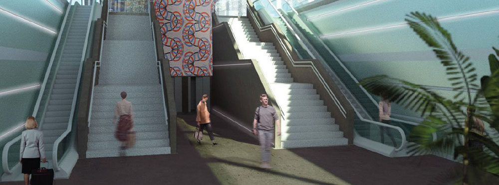 Per l’atrio ipogeo e l’accesso al nuovo sottopasso lato Cittadella Giudiziaria saranno utilizzate strutture esterne in acciaio e chiusure verticali in vetro trasparente. Le coperture saranno composte da pannelli decorati con installazioni artistiche.