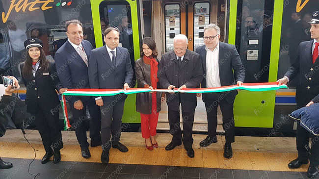 Il taglio del nastro c'è stato oggi alla stazione di Napoli Centrale, durante il quale erano presenti il Presidente della Regione Campania Vincenzo De Luca e il Direttore Divisione Passeggeri Regionale di Trenitalia, Maria Giaconia.