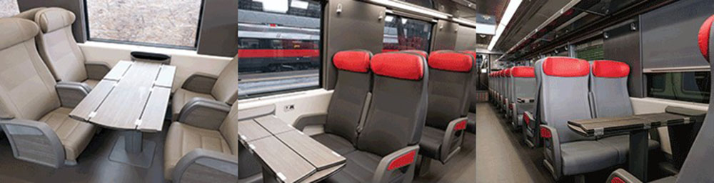 Il treno è costituito da 8 carrozze, per un totale di 500 posti a sedere e offre 3 livelli di servizio: