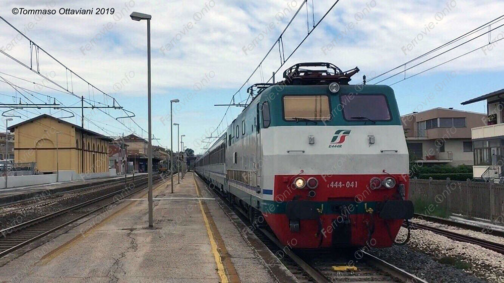 Per la cronaca, la E.444R.041 (ovviamente ex E.444.041) è di costruzione Reggiane-Marelli del 1971, riqualificata con nuove cabine nel 1994.