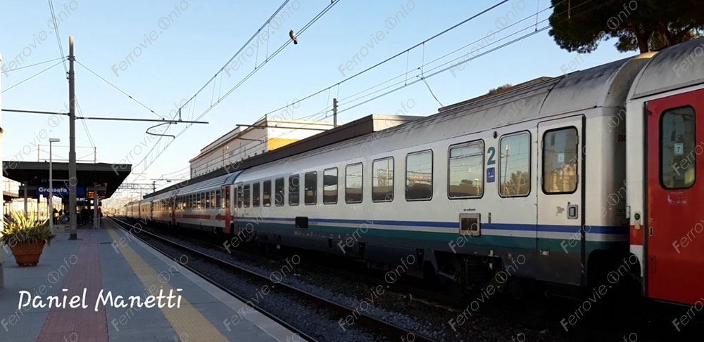 Con la sua cromia XMPR, ma con telaio grigio, la vettura poco dopo questo avvistamento dovrebbe aver raggiunto Santa Maria La Bruna per la pellicolatura nella nuova cromia degli Intercity.