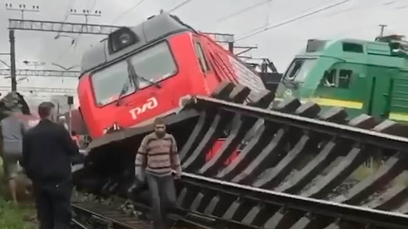 Spettacolare incidente ferroviario nei pressi di San Pietroburgo, nella stazione ferroviaria di Kupchinskaya.